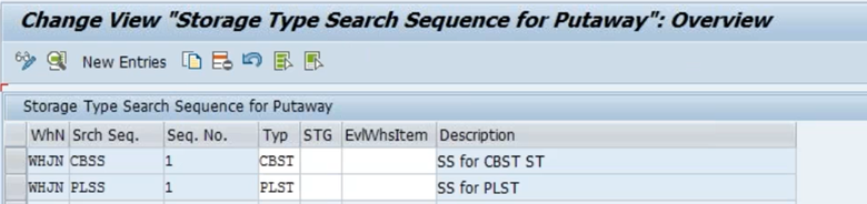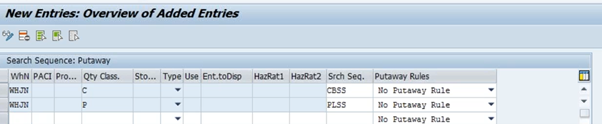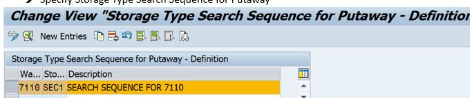 6. Specify storage type search sequence for put away (assign quantity classification to search sequence)
