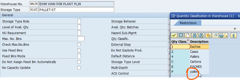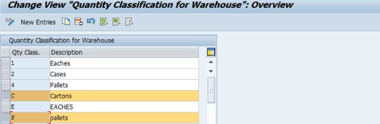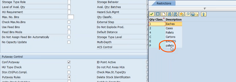 4. Define Storage type for each Single product/Carton/Pallets and Maintain Quantity classification in both storage type CARTON-C and Pallets-P