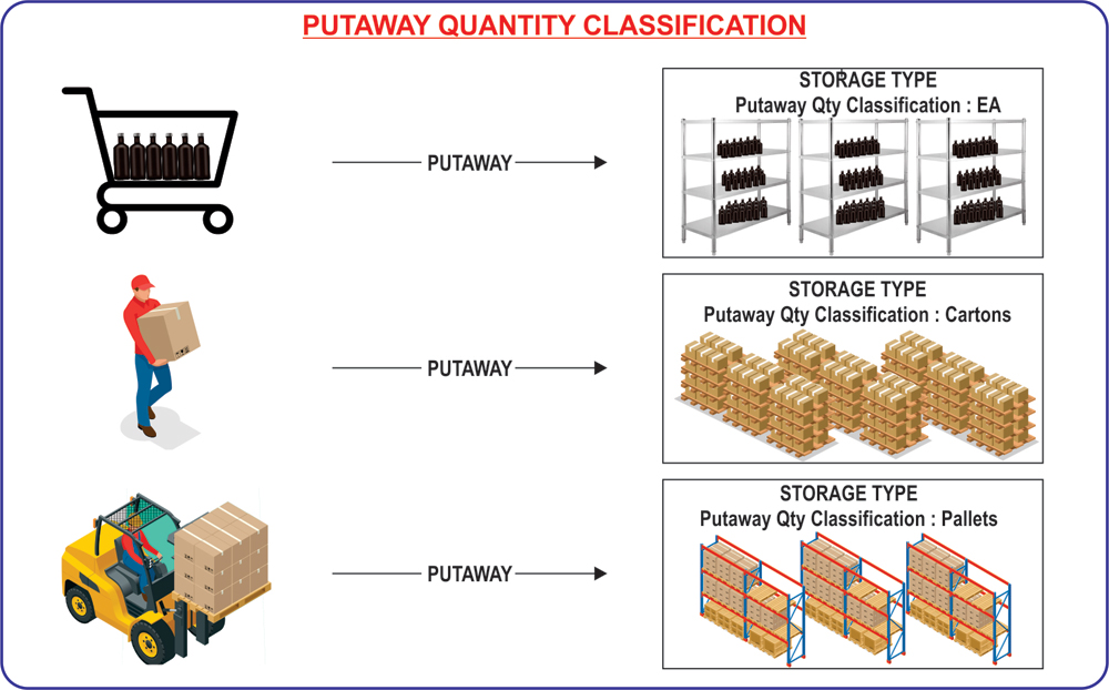 Business Scenario: If we received same product in different types of HU means that number of individual quantities, more than one HU with same products and more than one pallet with same product. How system can determine the storage type with different types of Hus/Pallets.   Example: Product Base Unit of Measurement = 1 EA, Quantity classification Carton: 1 CAR = 20EA Quantity classification Pallet: 1 PAL = 12 CAR (240EA)